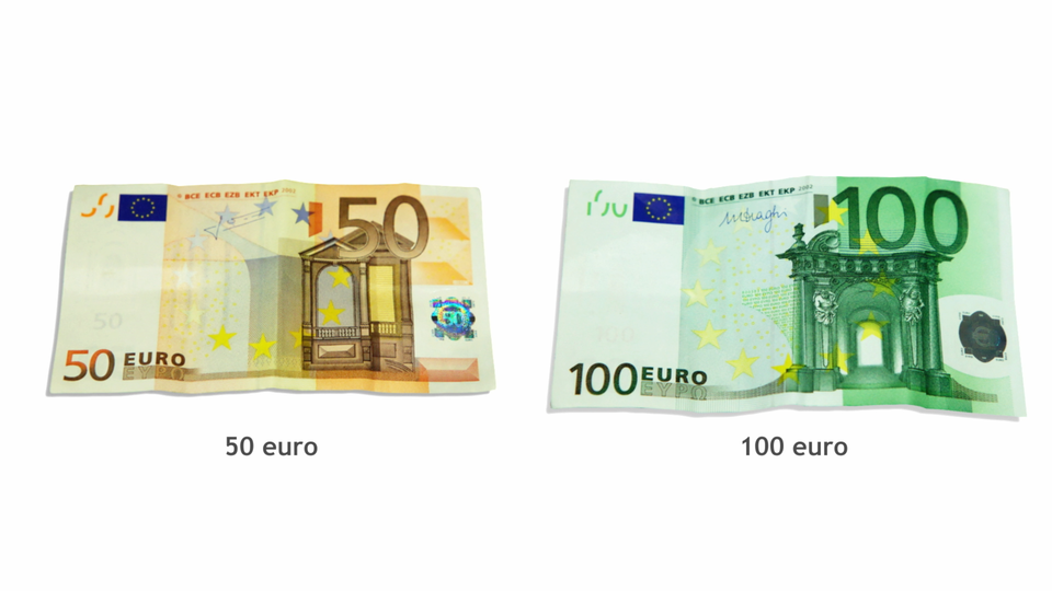 Animacja przedstawia podstawowe nominały waluty euro i złotówek.