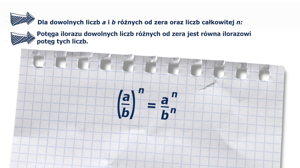 Animacja przedstawia w jaki sposób potęgujemy iloraz liczb.