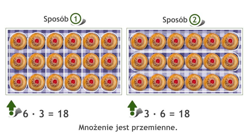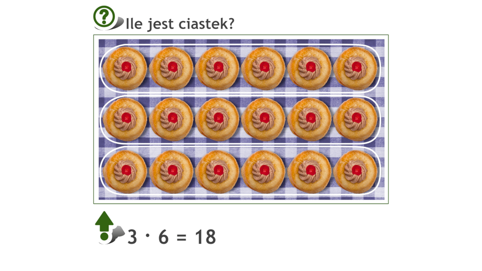 Animacja przedstawia jak w szybki sposób możemy obliczyć ilość ciastek na stole korzystając z mnożenia.